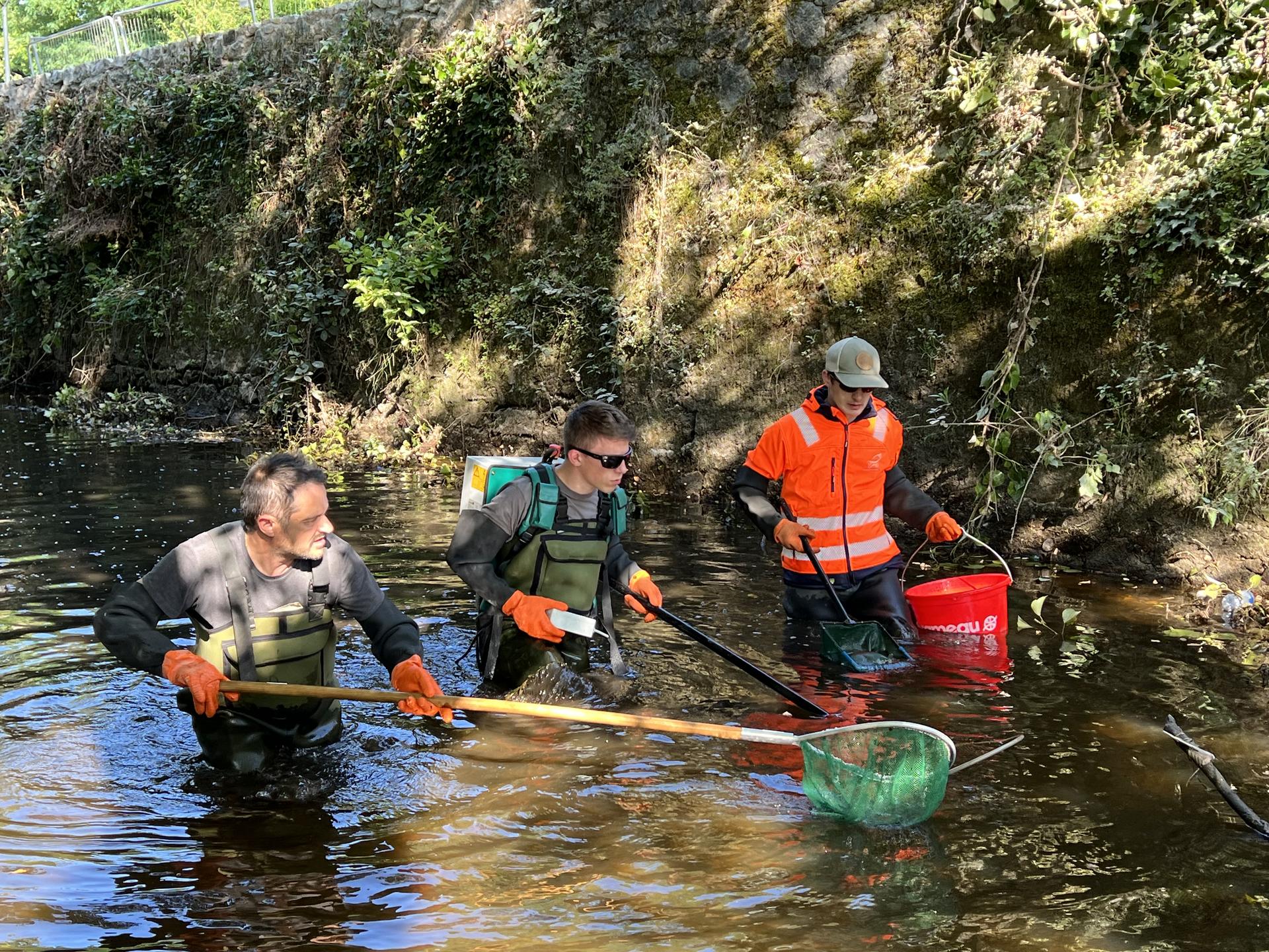 Cette opération, encadrée par arrêté, consiste à capturer les poissons présents dans la zone concernée à l’aide d’un matériel spécifique (identique à celui d'une pêche d'inventaire piscicole), puis à les transférer rapidement vers un secteur non impacté, où ils pourront continuer leur vie en toute tranquillité.